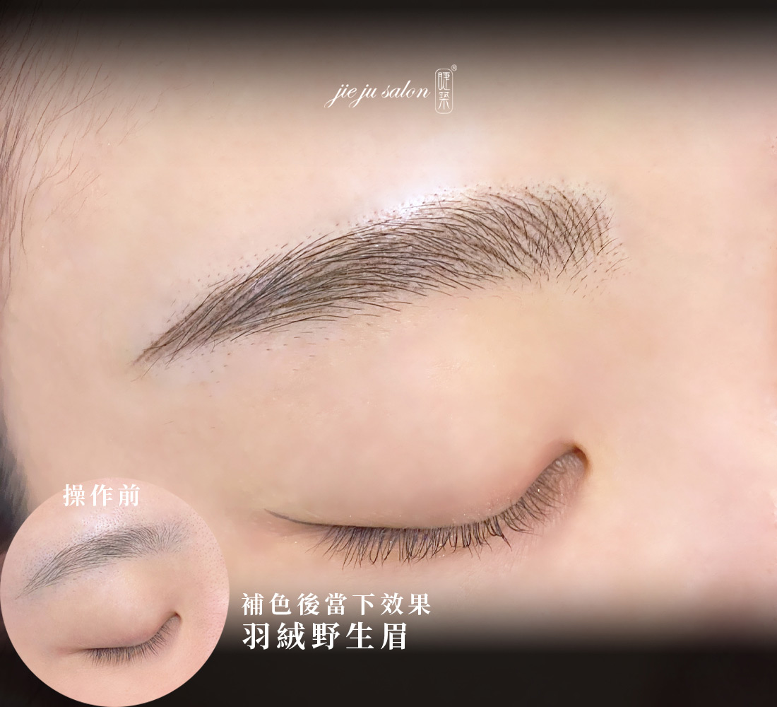 整個霧眉恢復期大約要 28 天,若是覺得顏色太淡,這時候就可以去做補色。